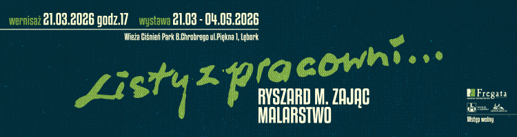 Lęborskie Centrum Kultury "Fregata" zaprasza na wernisaż wystawy malarstwa Ryszarda M. Zająca pod tytułem "Listy z pracowni". Inauguracja wystawy odbędzie się 21 marca 2026 roku, w Wieży Ciśnień w parku im. Bolesława Chrobrego w Lęborku. Początek wydarzenia o godzinie 17.