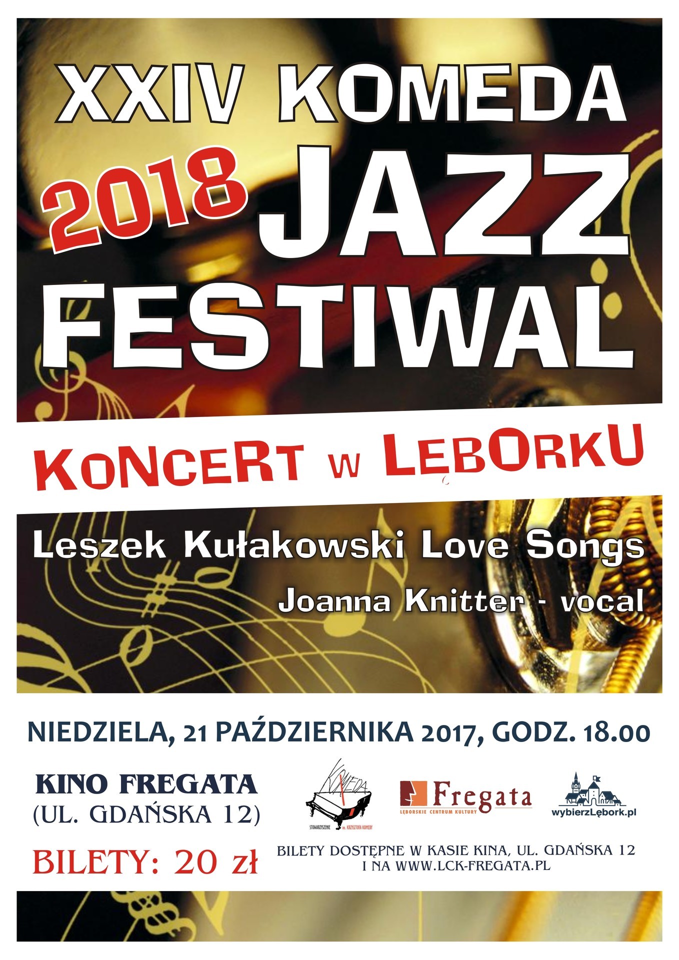 Lęborskie Centrum Kultury „Fregata” zaprasza na koncert w ramach XXIV Komeda Jazz Festiwal. W niedzielę, 21 października 2018 roku, na scenie w Kinie Fregata zostanie zaprezentowany projekt „Leszek Kułakowski – Love Songs”. Razem z zespołem profesora Leszka Kułakowskiego zaśpiewa Joanna Knitter. Początek koncertu o godzinie 18:00.