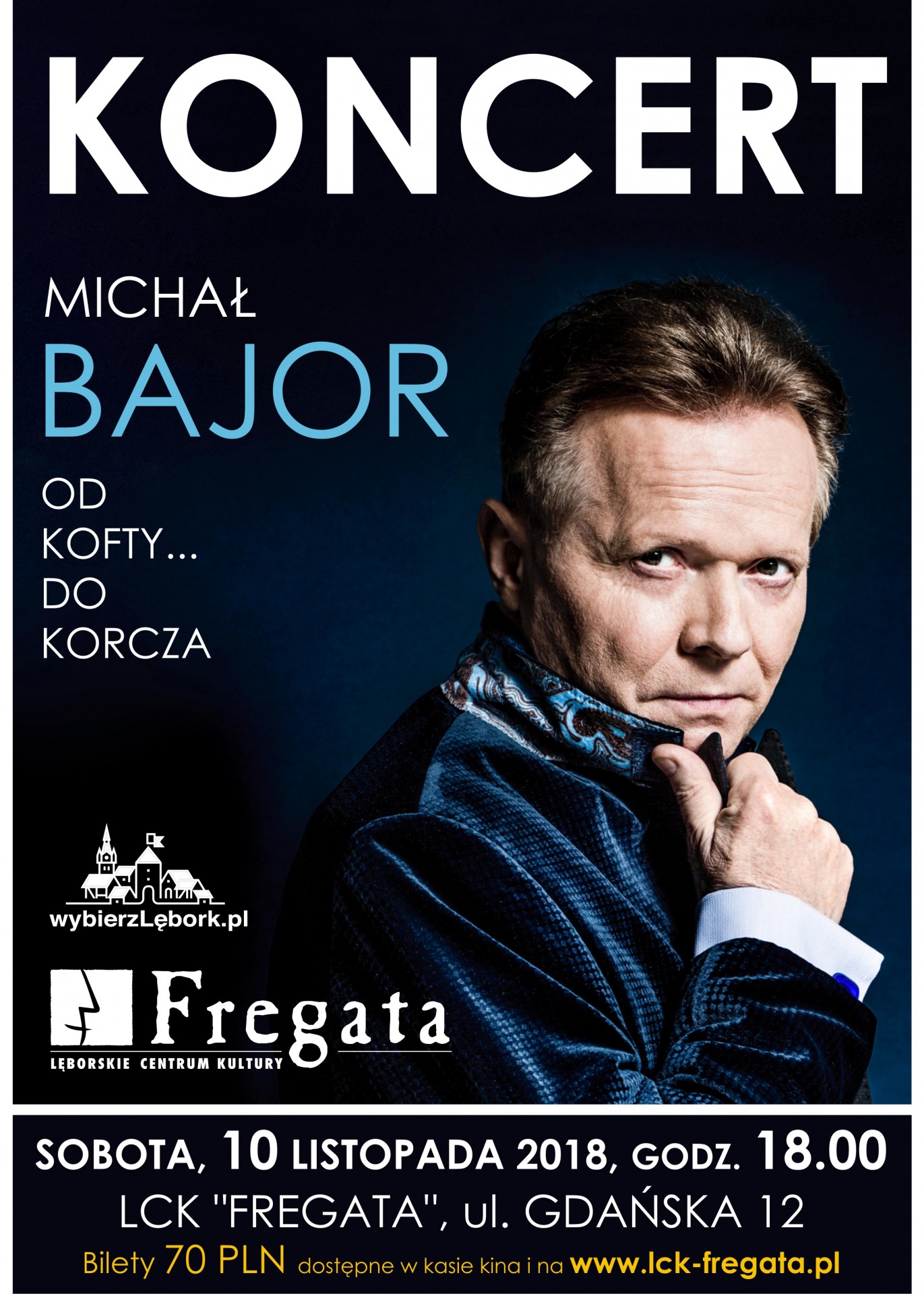Artysta zaprezentuje program „Od Kofty…do Korcza”, który składa się z piosenek z dwu płytowego albumu pod tym samym tytułem. To muzyczna historia utworów, które napisane i przetłumaczone specjalnie dla niego, przez najlepszych autorów i kompozytorów, pozwoliły artyście stworzyć własny, niepowtarzalny teatr piosenki. Wybrane z kilkuset i nagrane na nowo z jego dzisiejszą dojrzałością, są niejako podsumowaniem muzycznego dorobku tego charyzmatycznego aktora i pieśniarza. Wieczór pełen wspomnień, liryki, dramatyzmu, ale i żartu. Będzie to pierwszy występ tego wybitnego artysty w Lęborku.