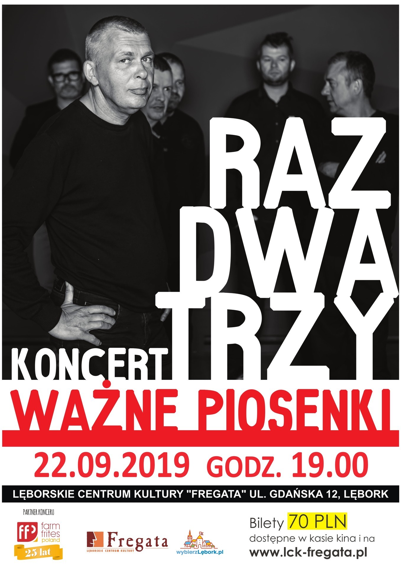 Lęborskie Centrum Kultury "Fregata" zaprasza na kolejne wyjątkowe wydarzenie muzyczne. W niedzielę, 22 września 2019 o godzinie 19, na scenie lęborskiej "Fregaty" zespół Raz Dwa Trzy zaprezentuje swój koncert pod tytułem "Ważne piosenki".