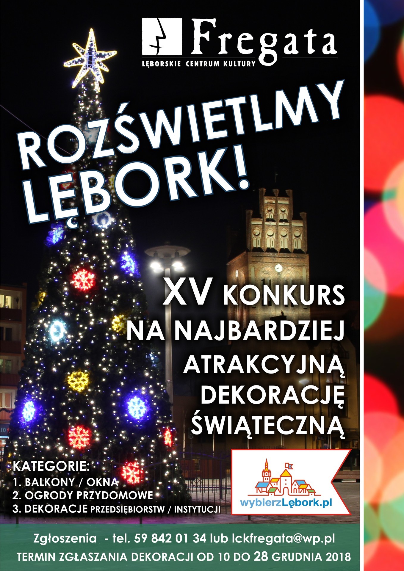 - Czekamy na zgłoszenia od 10 do 28 grudnia 2018 roku - informuje Paweł Piwka, dyrektor LCK „Fregata". - Zachęcam lęborczan do zgłaszania wyróżniających się pomysłowością i urodą dekoracji świątecznych. Spośród zgłoszonych ofert komisja konkursowa pod koniec grudnia wyłoni zwycięskie obiekty w poszczególnych kategoriach.