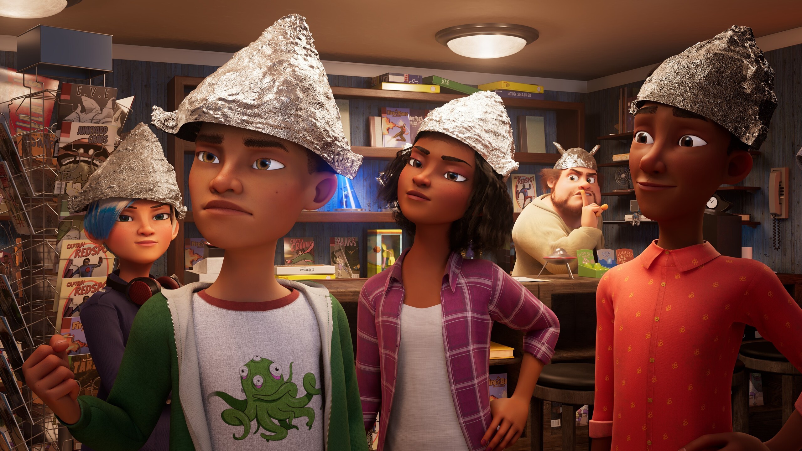W wyniku kosmicznej anomalii statek Sił Obrony Galaktyki i jego miniaturowa załoga – Gus, Max i Sophie trafiają do wnętrza mózgu 16-letniego ucznia – Normana. Od teraz widzą i słyszą wszystko to co nastolatek. A to dopiero początek kłopotów, bo dzielni kosmici są w trakcie misji, od której zależy dobro i przyszłość Wszechświata. Teraz, aby pokonać największego wroga – międzygalaktycznego złoczyńcę Zoltharda, Gus, Max i Sophie będą musieli ujawnić się i poprosić chłopca o pomoc. Muszą się jednak śpieszyć, bo podstępny Zolthard przejął już kontrolę nad umysłem dyrektorki szkoły, do której chodzi Norman i przeciąga na swoją stronę kolejnych nauczycieli. Czasu jest coraz mniej, po szkolnych korytarzach krąży UFO, a kosmicznie komiczna konfrontacja dosłownie wisi w powietrzu!