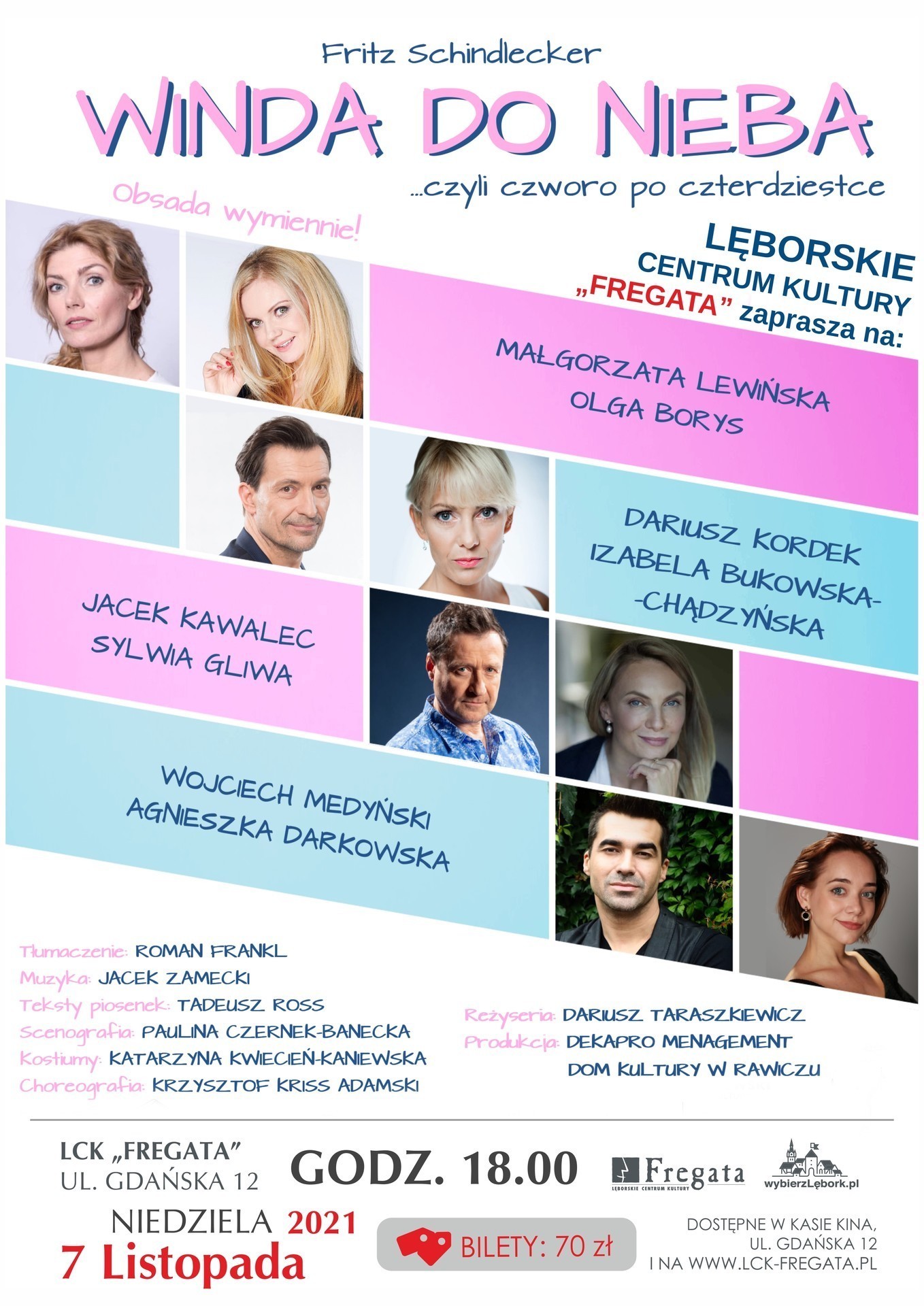 Na ten bardzo popularny spektakl teatralny w doborowej obsadzie zaprasza w niedzielę, 7 listopada 2021 roku, Lęborskie Centrum Kultury „Fregata”. Początek o godzinie 18:00. Bilety w cenie 70 złotych dostępne są w kasie Kina “Fregata” oraz za pośrednictwem strony www.lck-fregata.pl